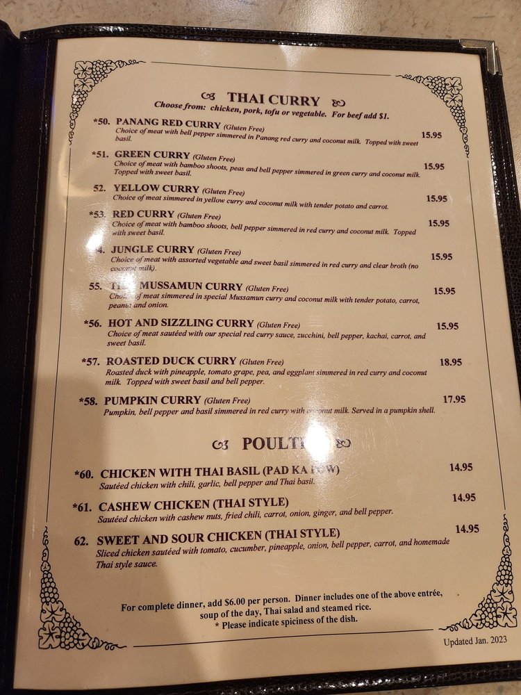 Welcome to Thai Spice Los Gatos, a vibrant culinary destination tucked away at 337 N Santa Cruz Ave, Los Gatos, CA. Renowned for its authentic Thai flavors, the menu is an enticing blend of classic dishes and unique specialties. Highlights include the Spicy Asparagus, the Pumpkin Curry served in a pumpkin, and the Crispy Soft Shell Crab. Each item promises an explosion of taste, with rave reviews attesting to the quality and aesthetic presentation of the meals.